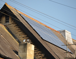 We are very pleased that installation of the solar electric photovoltaic system on the roof of the church building has now been completed and the panels are functioning. The system consists of 24 modules, spread over the east and west facing sides of the church roof.