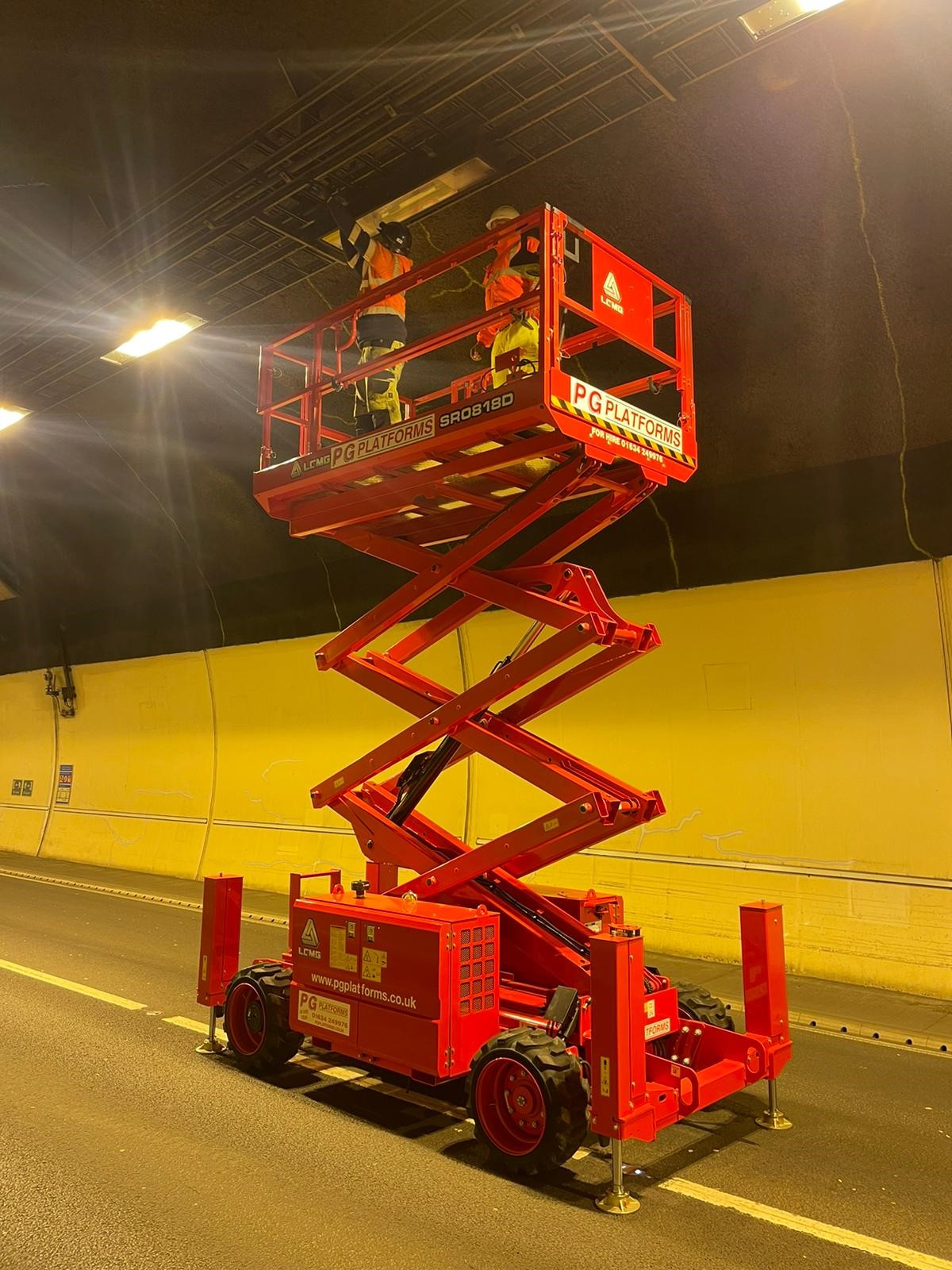 Rental specialist PG Platforms has taken delivery of the first LGMG SR818D diesel scissor lifts to be sold in the UK and has sent them straight out on a highway tunnel maintenance project.